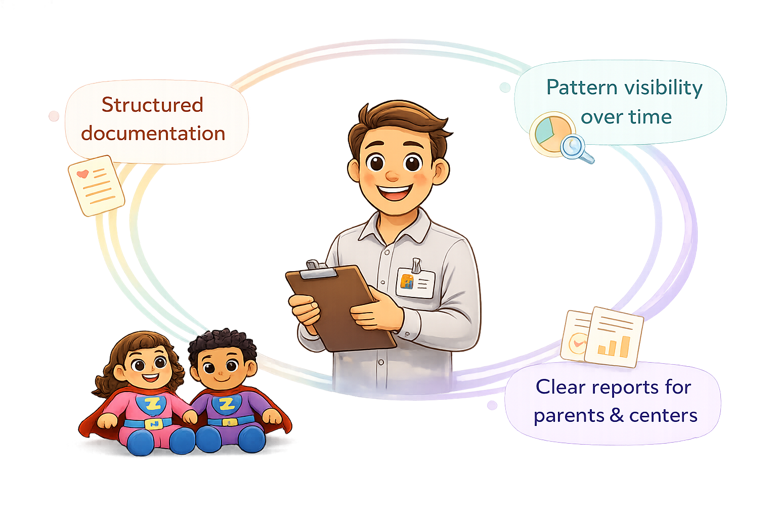 Data reflects therapist observations and clinical judgment. SUPER ME does not generate diagnoses or override professional decision-making.